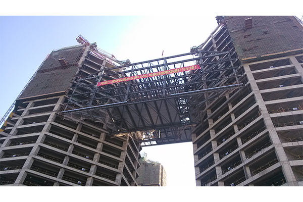 河南建設(shè)大廈1500噸鋼連廊整體提升