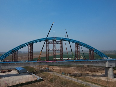032025.07河南二建集團(tuán)鋼結(jié)構(gòu)有限公司雄商高鐵(梁山段)黃河特大橋鋼拱肋順利合龍