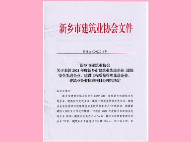 072022.04河南二建集團(tuán)鋼結(jié)構(gòu)有限公司再次榮獲“新鄉(xiāng)市建筑業(yè)先進(jìn)企業(yè)”等殊榮
