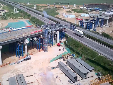 262024.04河南二建集團(tuán)鋼結(jié)構(gòu)有限公司蘭考至沈丘高速公路蘭考至太康段三標(biāo)鋼箱梁施工工程順利開始首次頂推施工