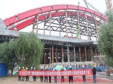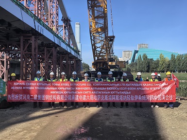 282023.09河南二建集團(tuán)鋼結(jié)構(gòu)有限公司阿斯塔納市輕軌一期跨伊希姆河拱橋順利合龍